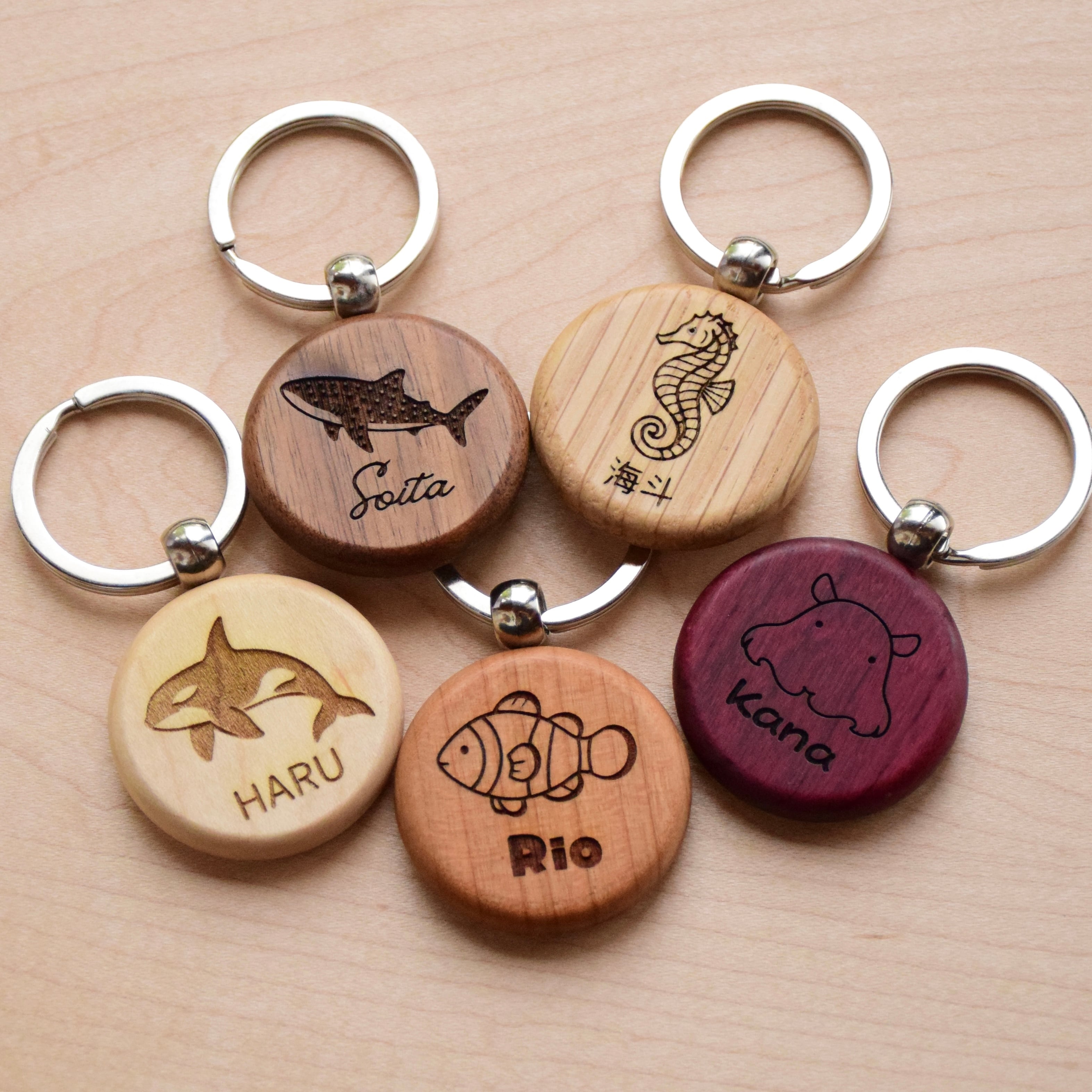 天然木×うみのいきもの 無垢材キーホルダー Round Wood Key Chain