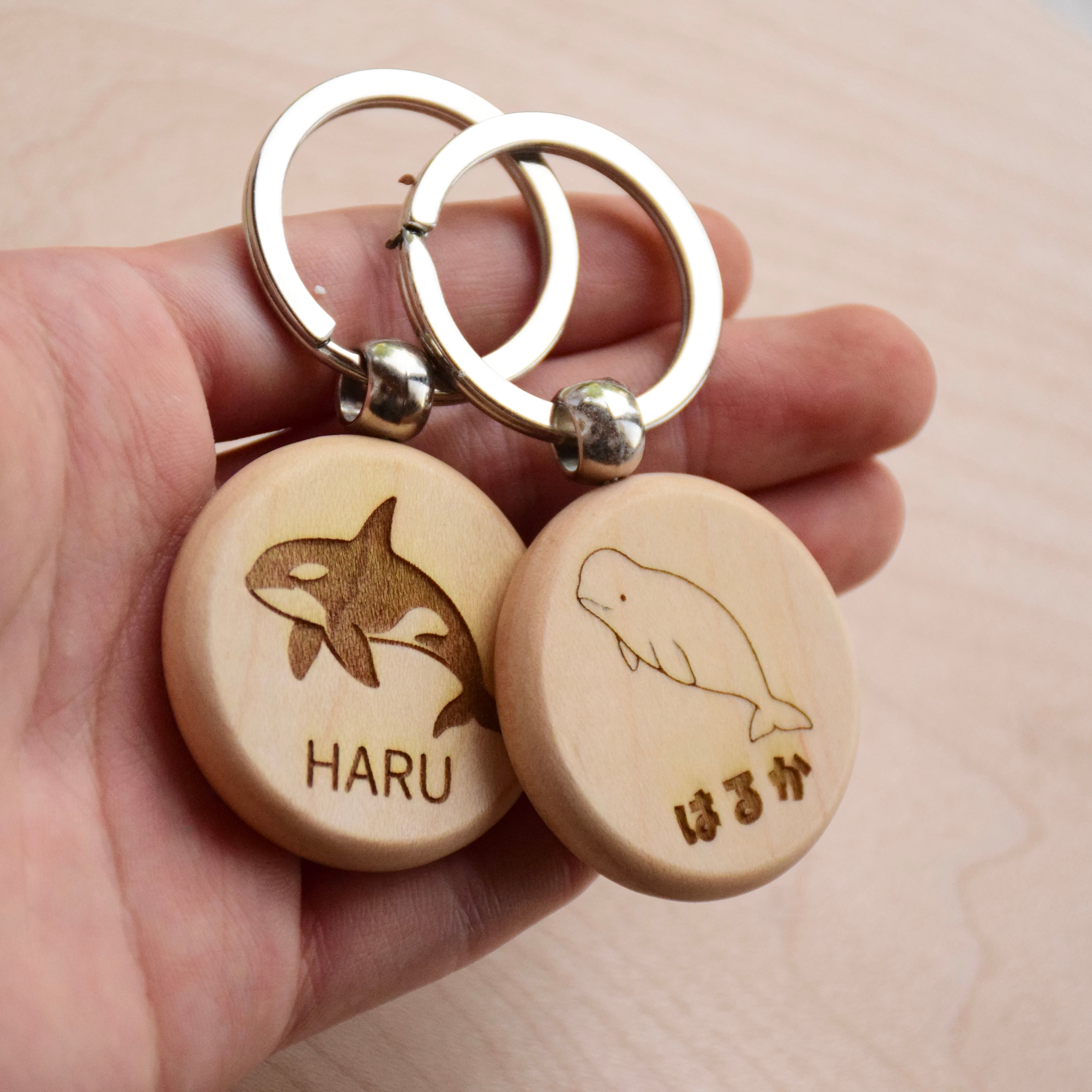 天然木×うみのいきもの 無垢材 キーホルダー Wood Key Chain
